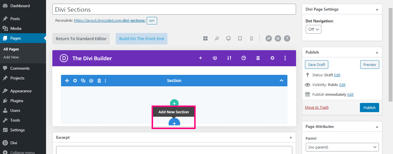 Enter Page Name and Click On ” Use Divi Builder”